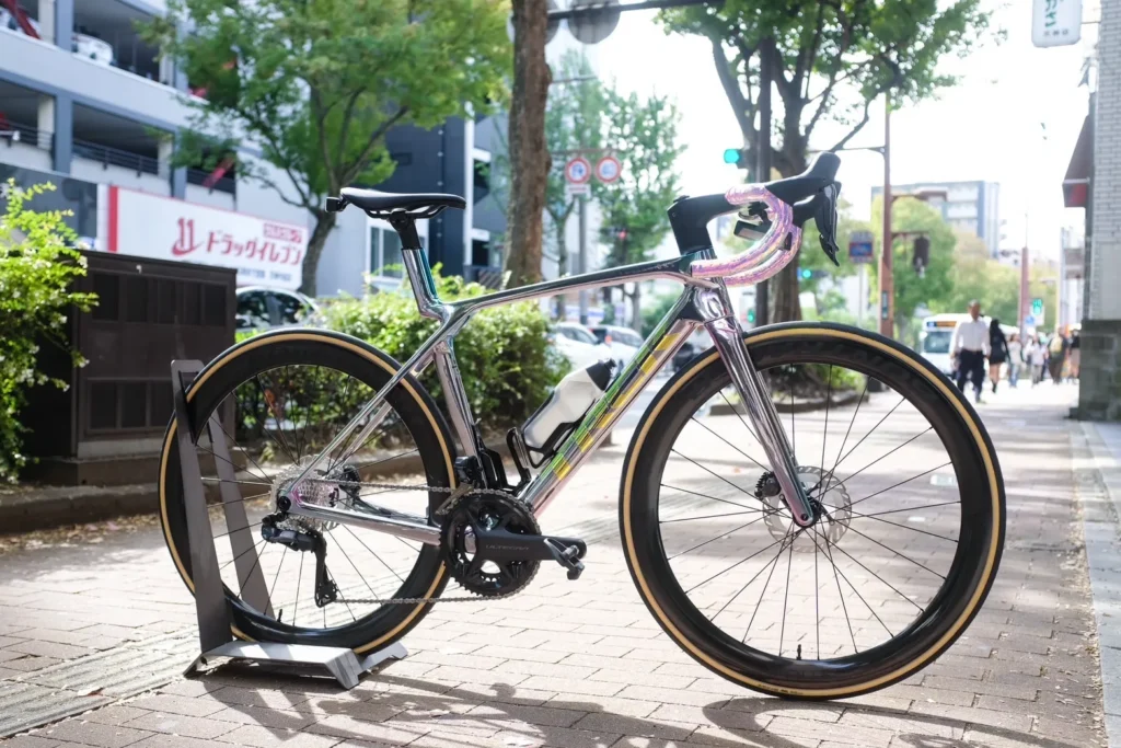サドルはRSLではなくProグレードですが、ホイールは最も高いグレードのRSLホイールで、高速巡行で抜群の性能を発揮しつつも、登りで重さが気にならない高性能モデルです。