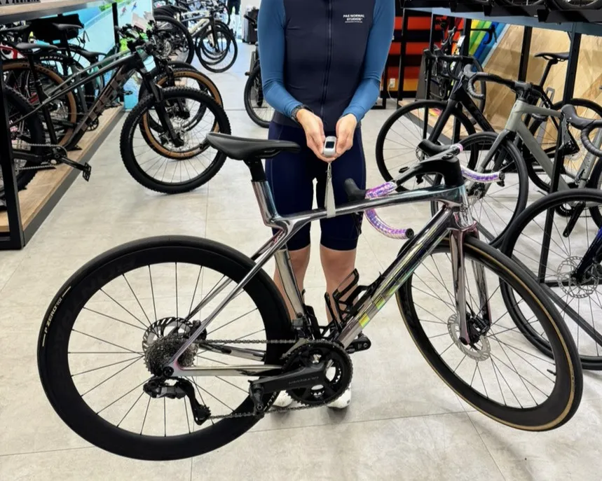 (測定場所はTREKの店舗ですが、測定器は私の私物を持ち込んでいます。店舗に行っても重量の測定はしてませんのでお気を付けください!)